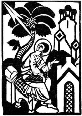 «Я едва ли не одинаково люблю Сомова и иконопись»,- признавался он в письме к Блоку. Эта двойственность сознания – две стихии – религиозная и символическая – наложили печать на творчество Купреянова. Уже раньше его гравюры обрастают символами имеют не только первый, но и второй план, заключают в себе скрытый смысл. Не случайно Купреянов в гравюре начинал с самого интимного, с самого замысловатого жанра книжного знака – экслибриса. Его первые экслибрисы – это зашифрованные «за семью печатями» знаки, до смысла которых невозможно доискаться без знания Библии или геральдического словаря. Его гравюрное пристрастие к житию Николы можно рассматривать как особый интерес к соимённому ему – Николаю Купреянову – образа святого. Художник смотрел в гравюру, словно в зеркало, она давала его искусству справку, чувства законченности.