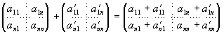 - членными комплексными числами и в качестве частного случая охватывающее также и кватернионы. Действия над матрицами отталкивалются у Кэли от очень простой идеи, состоящей в том, что с матрицами, возникающими в теории линейных подстановок, следует обращаться по правилам, инспирированным этой теорией. Соответственно этому сложение двух матриц должно осуществляться сложением соответствующих их элементов: