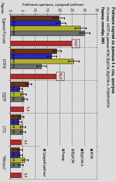В качестве промежуточных оценок эффективности MRданной партии были выбраны рейтинги партии "Яблоко" составленные различными исследовательскими организациями.