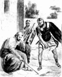 Плутарх пишет: «Он находился один в своем жилище, углубленный в рассмотрение геометрических чертежей. Будучи всем умом и чувствами погружен в размышления, он не обратил внимания на шум и крики римлян, вор вавшихся в город. Вдруг перед ним предстал римский солдат. Архимед успел только крикнуть: «Не трогай моих чертежей, -как меч солдата поразил его».
