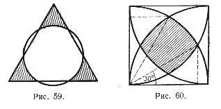 между собой и площадь каждого из них равнялась бы площади меньшего круга (рис. 58).