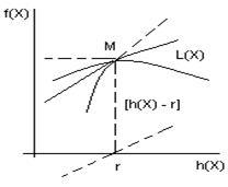 Идею решения задачи Лагранжа можно представить следующим образом: можно попытаться “исправить” рельеф местности так, чтобы отклонение от дороги не давало преимуществ в достижении высоты. Для этого нужно заменить высоту f(Х) функцией.