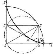Если теперь принять и на оси ординат отложить отрезок ОС == 2, соединить затем точку С с точкой А(1, 0), а точку пересечения прямой СА с циссоидой соединить с точкой О и продолжить полученный отрезок до пересечения с касательной, то, как это следует из формул (5) и (6), отрезок AD и будет равен