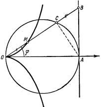 и пересекает циссоиду в точке М, координаты которой удовлетворяют уравнению