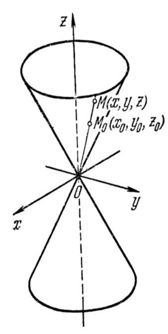 конуса (6) и начало координат О , целиком располагается на конусе, т. е. координаты (х, у, z)