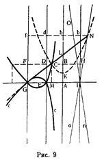 . Между тем после Ферма и Декарта и благодаря им начинает развиваться чисто аналитический метод исследования геометрических образов, в принципе не нуждающийся в обращении к геометрическим построениям и опирающийся лишь на алгебраическое исчисление. Такова общая, идейная сторона дела. К этому следует добавить, что новая алгебра давала средства изучения кривых любого порядка, первые примеры чего имеются уже у Декарта[16]