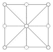 Рис. 2. Сетка 3х3. Пунктирные линии и вершины необязательны для LOD ммеша.