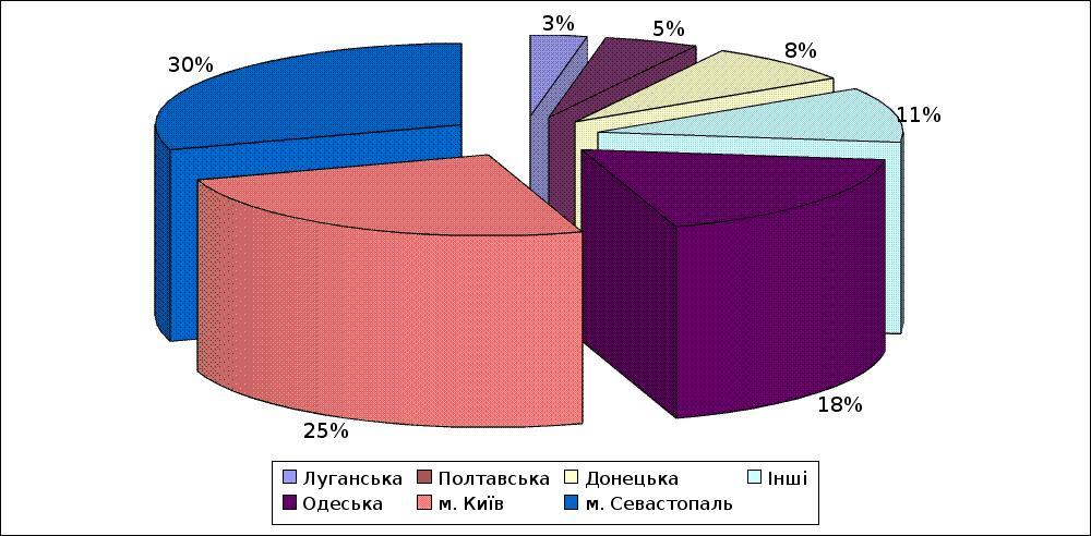 Регіональний розподіл Українських прямих іноземних інвестицій |