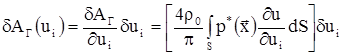 При этом для i-го узла n-го конечного элемента первые вариации работ упругих, инерционных сил и гидродинамического давления относительно ui