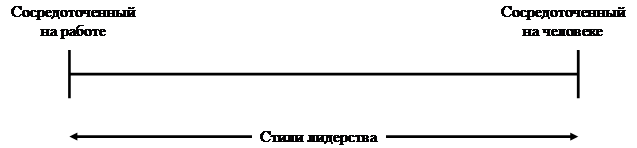 и его коллеги в Мичиганском университете разработали альтернативную систему, сравнивая группы с высокой производительностью труда и группы с низкой производительностью в различных организациях. Они считали, что разницу в производительности может объяснить стиль лидерства. Аналогично континууму по теориям “Х” и “Y” МакГрегора, руководители групп с высокой и низкой производительностью классифицировались по континууму, находящемуся в пределах от одной крайности - сосредоточенные на работе (теория “Х”), до другой - сосредоточенные на человеке (теория “Y”). Этот континуум представлен на Рис 2.