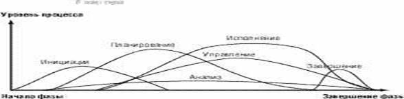 Процессы управления проектами накладываются друг на друга и происходят с разной интенсивностью на всех стадиях проекта, как показано на рис. 1.