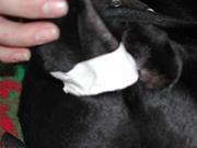 Фото 6. Так уши щенка выглядят после приклеивания коротких узких полосок пластыря.