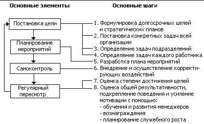 Управление по целям представляет собой основной метод или подход, используемый менеджерами для операционализации процесса постановки целей в организации. Первым важность определения взаимных целей для руководителя и подчиненного, по-видимому, отметил П. Дракер. Он считал, что задача руководства заключается в том, чтобы уравновесить разнообразные потребности и цели.