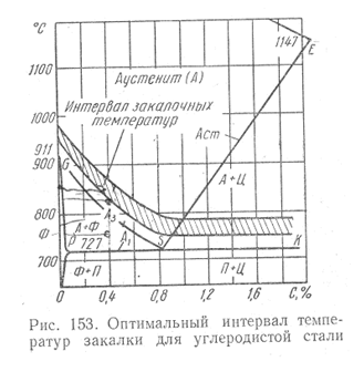 Закалкой называют нагрев стали выше критической точки с последующим быстрым охлаждением. Обычно нагрев проводят на 30-50 град выше линии GSK на диаграмме железо - цементит.