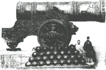 .Справедливости ради следует заметить, что в это время существовала более крупная бронзовая пушка массой 57 т, отлитая в г. Ахман-дагаре в Индии в 1548 г. Она стоит и сейчас на стене городской крепости близ знаменитого мавзолея Гол-Гумбаз ,но ни А. Чохов, ни его современники могли об этом не знать. Этот факт и сейчас особенно не афишируется.