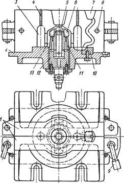 По числу рабочих полостей (гнезд), определяющих возможность одновременного, с одной заливки, изготовления того или иного количества отливок, кокили разделяют на одноместные (см. рис. 2.1) и многоместные (см. рис. 2.4).