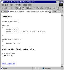 Эксперимент был проведен во время весеннего семестра 2003 г. в рамках курса для студентов-бакалавров «Введение в программирование», преподаваемого в Университете Питтсбурга. QuizPACK был одним из обучающих средств, доступных студентам этого курса. Для каждой из 16 лекций части курса, отведенной под изучение С, QuizPACK предлагал 2 теста по 5 вопросов в каждом. Хотя, наш предыдущий опыт показывал, что многие студенты используют QuizPACK на регулярной основе, мы попытались обеспечить дополнительную мотивацию. С этой целью мы изменили формат еженедельных тестов, проводимых в классе. Вместо традиционных вопросов с множественным выбором мы использовали вопросы открытого типа, взятые непосредственно из базы QuizPACK. Таким образом, еженедельно студенты брали 10-минутный тест, составленный из используемых в QuizPACK 5 вопросов, которые могли им встречаться (с другими значениями формирующего параметра) во время самостоятельной работы с системой. Это обеспечивало дополнительную мотивацию, исключая при этом вероятность списывания. В результате количество студентов, активно использующих QuizPACK возросло на 1/3 по сравнению с предыдущим семестром. В следующем разделе мы описываем детали и результаты проведенного эксперимента.