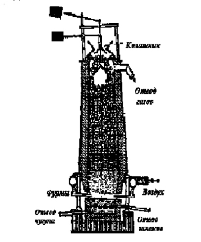 Выплавка чугуна производится в огромных доменных печах, выложенных из огнеупорных кирпичей достигающих 30 м высоты при внутреннем диаметре около 12 м.