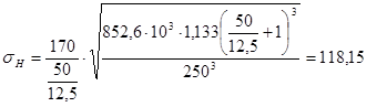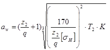 Определяем межосевое расстояние из условия контактной прочности