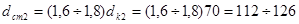 Диаметры подшипниковых шеек dп2=65мм, диаметр вала в месте посадки червячного колеса dк2=70.