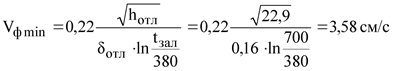 Минимально допустимое значение скорости течения расплава в форме определяется по формуле Галдина: