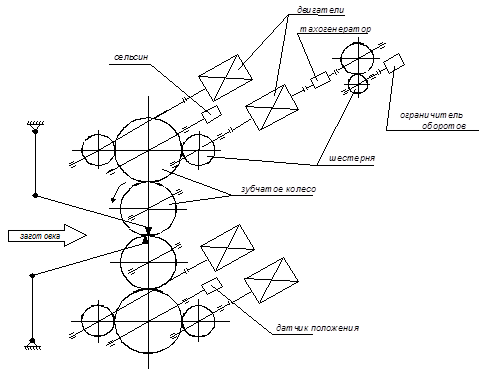 Привод как универсальных, так и горизонтальных клетей осуществляется от одного электродвигателя через двухскоростной комбинированный редуктор.