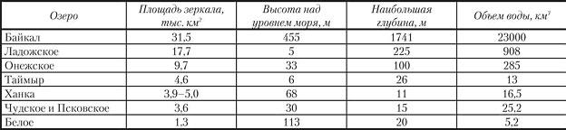 В крупных озерах доля ежегодно возобновляемых вод составляет всего 1,5% от их общего объема, хотя этот показатель и варьирует в довольно широких пределах (в Байкале - 0,3%, в Чудско-Псковском - 57%).