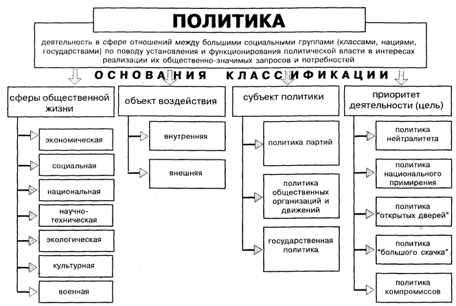дметом самых различных толкований. В настоящее время можно выделить не менее четырех основных толкований политики: