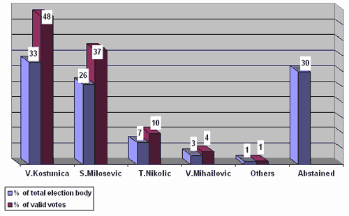 Целью данного исследования было выяснение того, являлась ли закономерной победа кандидата оппозиции Воислава Коштуницы и поражение действующего президента Слободана Милошевича. В рассмотрении данного вопроса я хотел бы выделить следующие основные факторы: