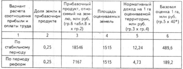 Данные строк 1, 3, 4 — по материалам четвертого тура земельно-оценочных работ.