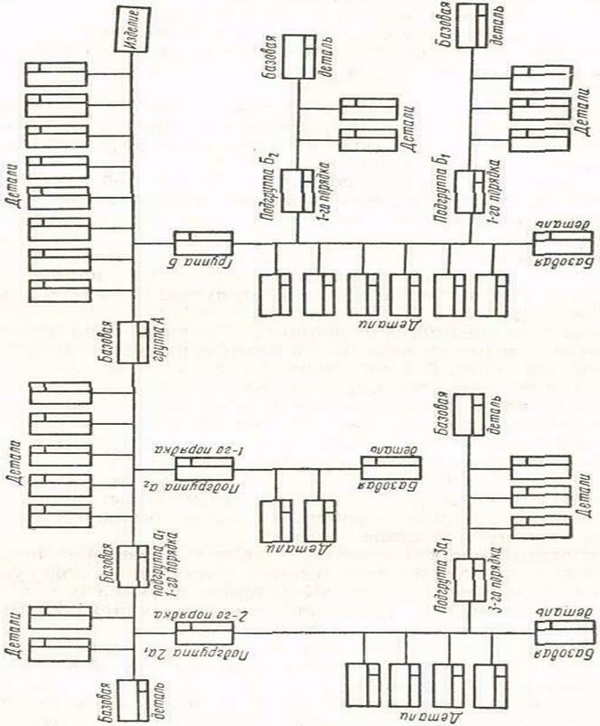 Сборка машины или отдельного узла начинается с установки базовой детали на стенд или рабочее место. В качестве базовой детали берут деталь, поверхность которой в дальнейшем используется при установке машины на фундамент. К базовой детали в соответствии с планом сборки последовательно крепят остальные детали узлов, при разработке технологического процесса на сборку машин узлы машины целесообразно делить на группы и подгруппы. В группы включают узлы, непосредственно входящие в машину, а подгруппы — узлы, входящие в машину в составе группы.