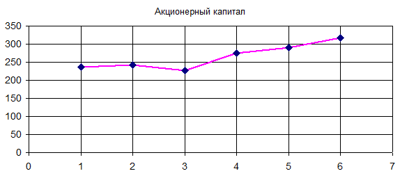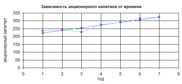 =7, получаем прогнозное значение показателя “акционерный капитал” на седьмой год: 324,583.