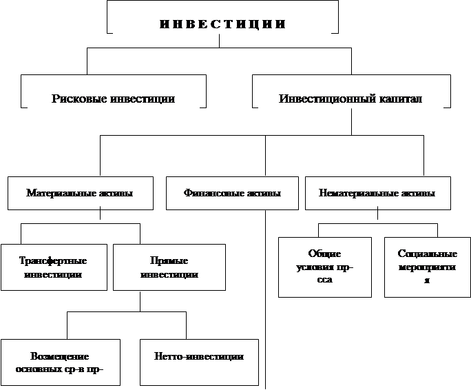: непосредственные инвестиции в материальные объекты (земельные участки, средства производства, оборудование, производственные запасы). Различают следующие виды материальных инвестиций: