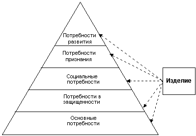 Рис.2. Роль изделия в удовлетворении потребностей на основе теории А.Маслоу