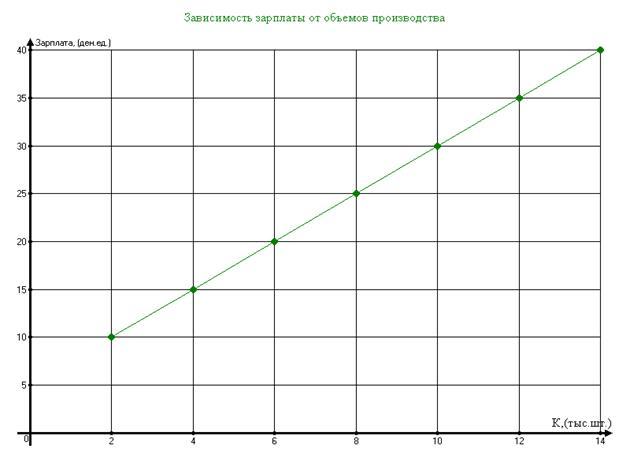 - Построить графическую зависимость зарплаты от объёмов производства, и объяснить его направленность.