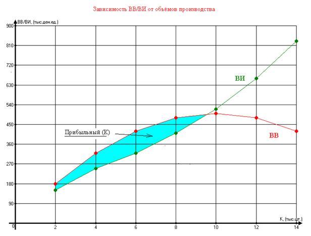 При К=12 (тыс. шт.), DВИ=140 (тыс. ден. ед.);