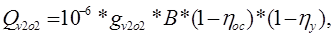 Масса выбрасываемых загрязняющих веществ при сжигании природного газа Мi