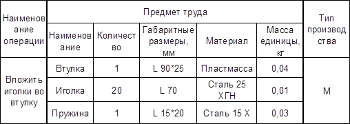 На основе исходных данных производится расчленение приёмов на трудовые движения (микроэлементы) и определяется продолжительность трудового процесса при существующей системе организации рабочего места. Полученные данные записываются в таблицу 2.2.