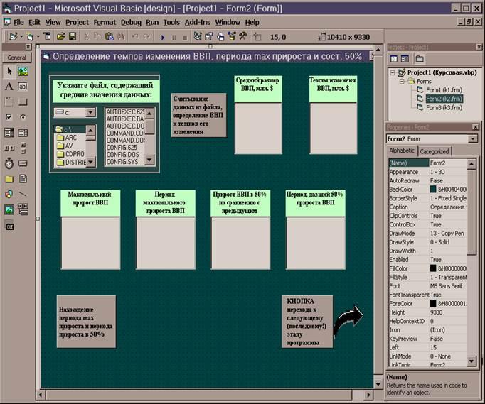 Разработать форму и программу в Visual Basic, позволяющую считывать этот файл, вычислять размер ВВП, темпы его изменения и находить период максимального прироста и периоды, дающие 50% прироста.