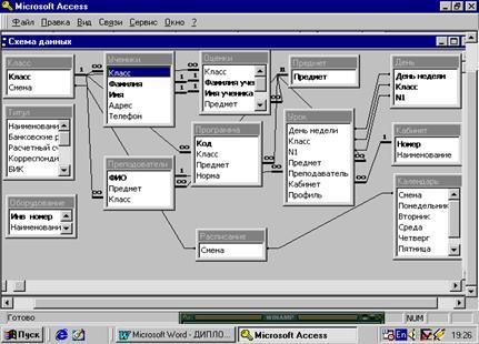 В дипломной работе рассмотрены общие вопросы баз данных различных моделей, принципы организации текстовых, сетевых и реляционных баз. Описан подход к проектированию баз данных. На конкретном примере базы данных для ведения электронной школьной документации показан процесс конструирования и построения базы данных. Раскрыты приемы создания экранных форм и отчетов.