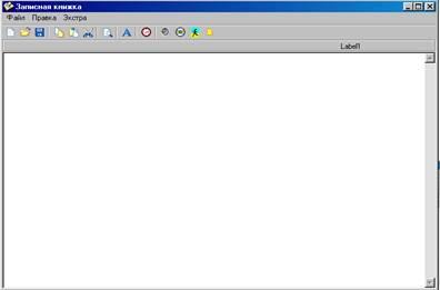 Главная формы будет похожа на программу «Текстовый документ» Windows, но с немного другим интерфейсом и новыми функциями. Будет реализована панель инструментов на которую выложим кнопки которые, на мой взгляд, будут часто использоваться пользователем. Также будут часы. При запуске программы будет загружаться последний файл, который был открыт перед закрытием программы, а также когда перед закрытием программы будет задаваться вопрос о сохранение файла. При создании нового файла с заметками, сразу этот файл будет сохранятся на жестком диске ПК . Будет стандартный набор для работы с текстом: копировать, вырезать, вставить, найти, отменить последние действие . Будет 4 программы: «Справочник друзей», «Media Player», «CD-Rom», «Напомнить о…»(см. выше).