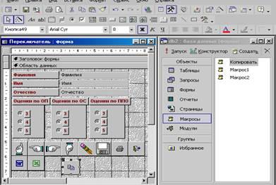 В своей дипломной работе, я, исследовал возможности СУБД Access 2000 по созданию макросов. Макрос в Access представляет собой структуру, состоящую из одной или нескольких макрокоманд, которые выполняются либо последовательно, либо в порядке, заданном определенными условиями. Набор макрокоманд в Access очень широк, с помощью макросов можно реализовать многое из того, что позволяют сделать процедура на VBA. Каждая макрокоманда имеет определенное имя и, возможно, один или несколько аргументов, которые задаются пользователем.