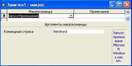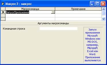 · Создайте новый макрос. В первой строке введите макрокоманду ЗапускПриложения.