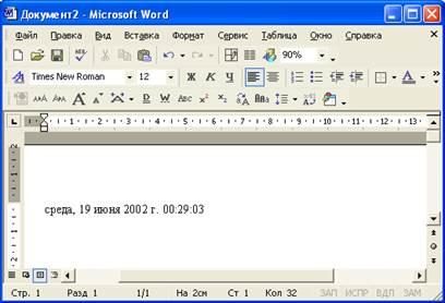 · Перейдите в окно Word 2000 и вставьте в первую строку документа поля Date