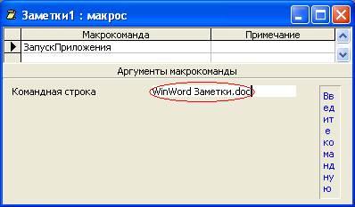 на панели инструментов или просто клавишу <Insert>. Появляется пустая строка. В этой строке в поле Макрокоманда