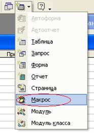 таблицы, запросы, отчеты и другие макросы. При этом будут создаваться соответствующие макрокоманды: ОткрытьТаблицу, ОткрытьЗапрос, ОткрытьОтчет, ЗапускМакроса.