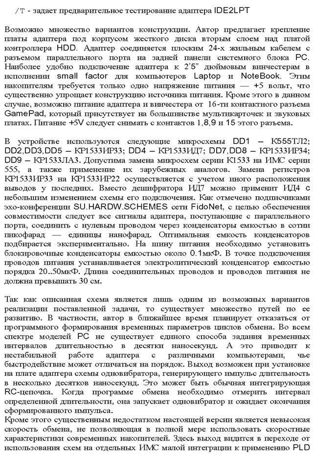 8. Разработан адаптер для подключения жесткого диска к параллельному порту PC.