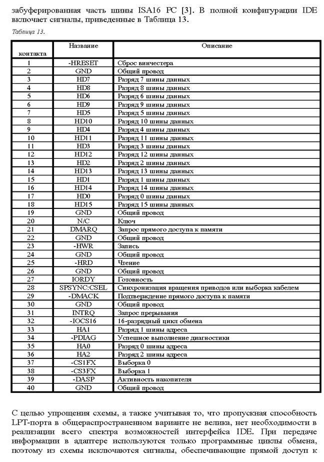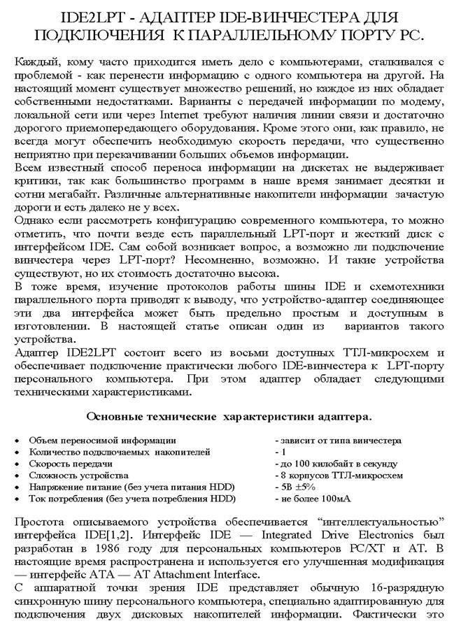 8. The adapter for connection of a hard disk to parallel port PC is developed.