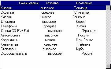 Наименование товара. Служит первичным ключом, по которому можно получить доступ к любой строке таблицы. Тип данных – строковый (Character), длина – 20 символов. Ширина поля – 20 символов. Возможные значения – названия товаров, имеющих отношение к офису.