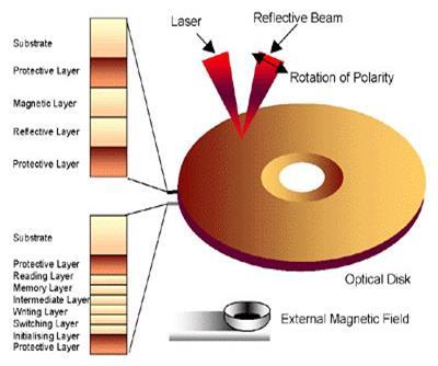 В оптических носителях (CD, DVD, магнитооптика) во время чтения луч полупроводникового лазера отражается от слоя с записанной информацией.
